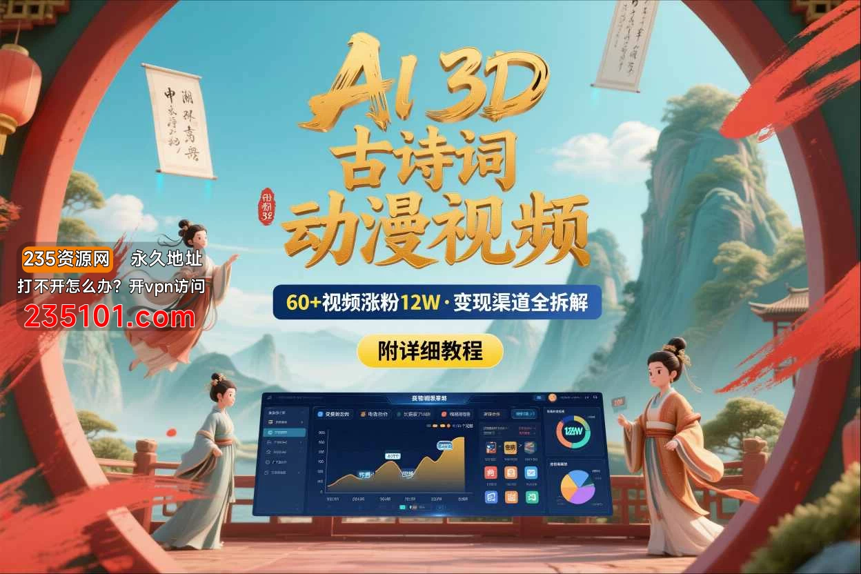 AI制作3D古诗词动漫视频,60多个视频涨粉12W,多个变现渠道拆解【附详细教程】