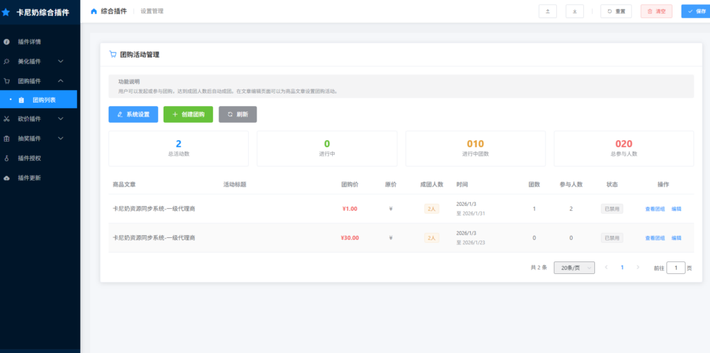 子比主题综合插件-八合一:砍价、团购、抽奖、统计、工单等